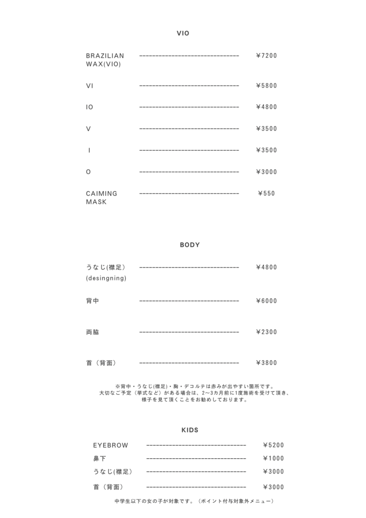 キッズ脱毛(〜中学3年生の女の子を対象としております)も受け付けておりますが、いくつか注意事項等がございますので必ず事前にお問い合わせください。